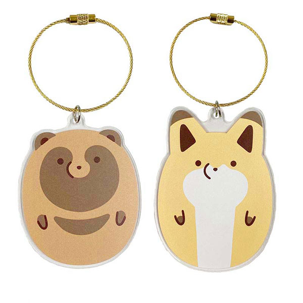 とってもポップで旅行がもっと楽しくなる 遠くからでも一目でわかるラゲッジプレート(タヌキ)と(キツネ) 全2種で登場!装着部分がワイヤーなので、取っ手部分やファスナーに つけて、しっかり固定できます。裏面になまえが書けるので、手荷物の 受取り間違いの心配もありません。