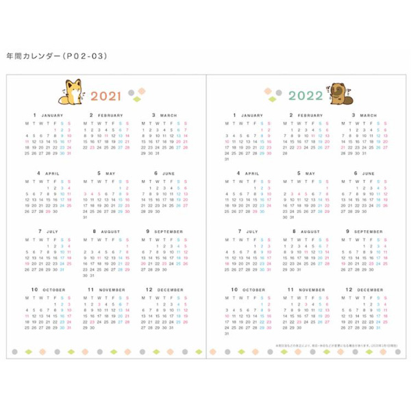 B6マンスリー手帳 (2020年10月始まり) — 「タヌキとキツネ」公式サイト