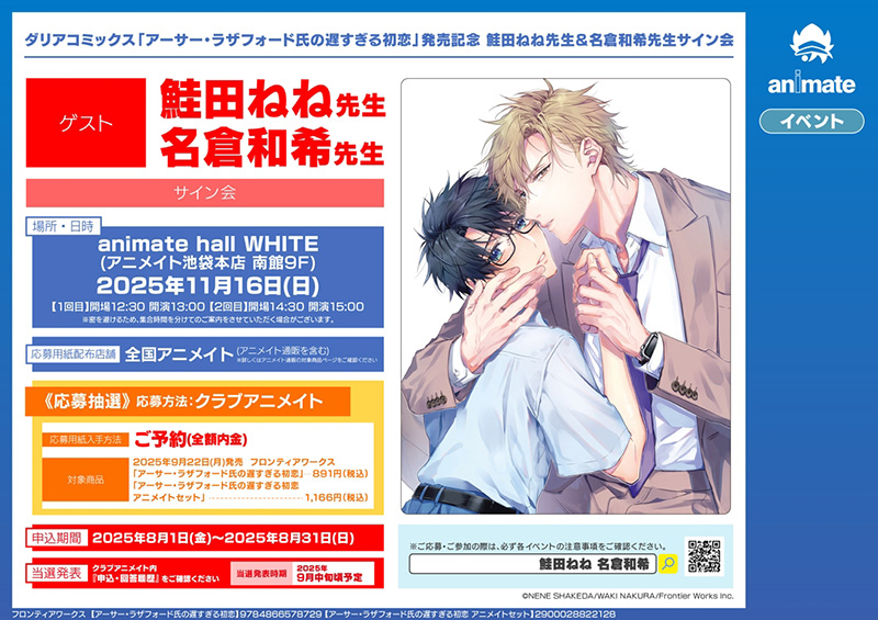 ダリアコミックス「アーサー・ラザフォード氏の遅すぎる初恋」発売記念