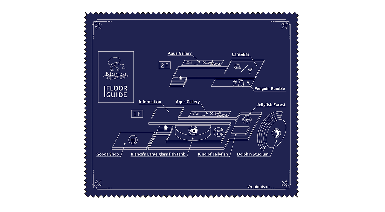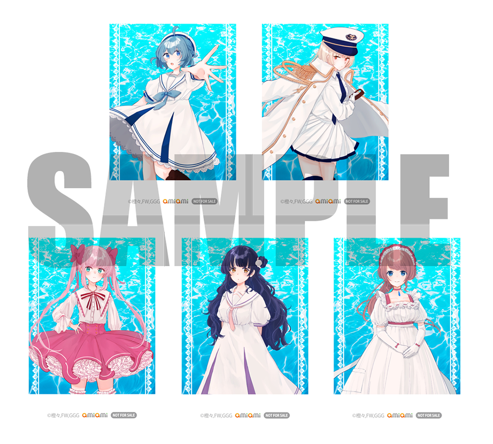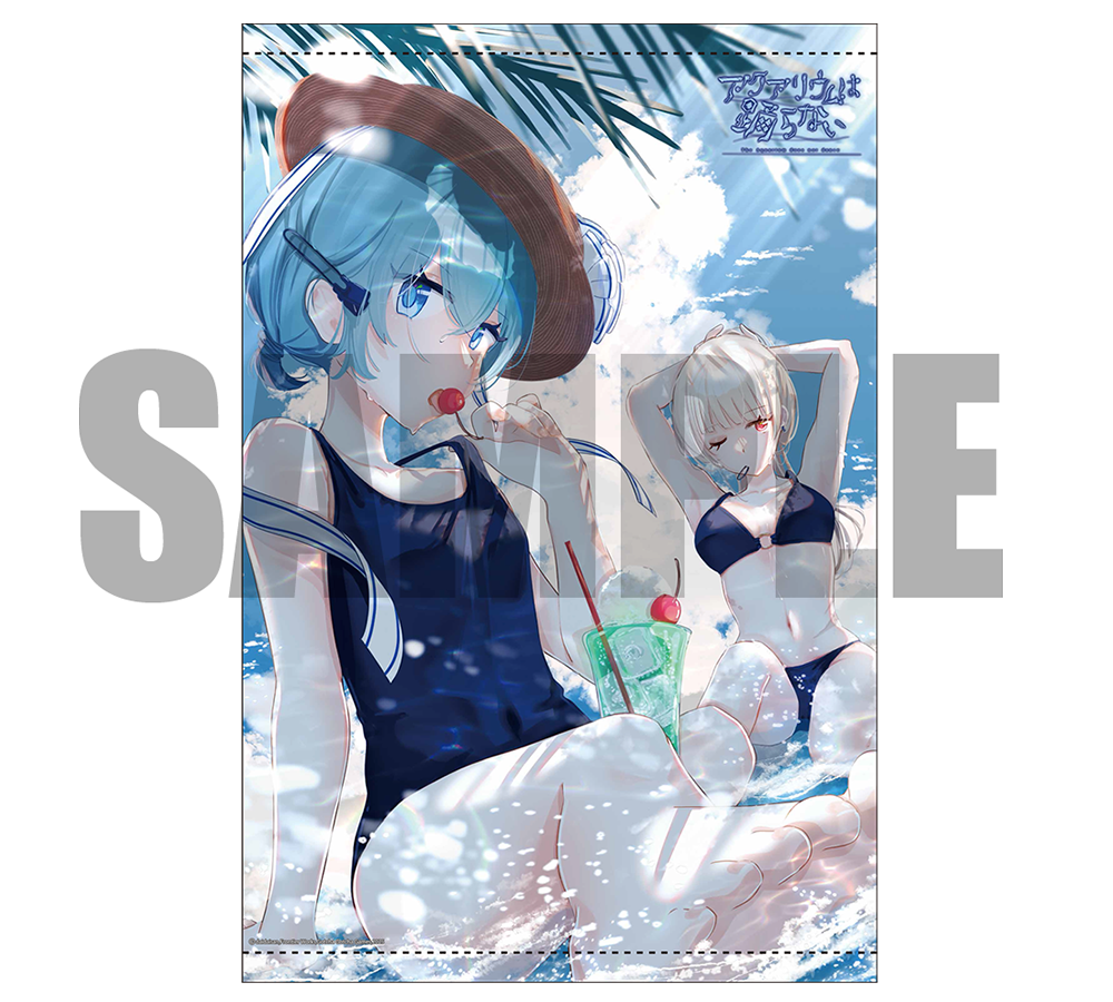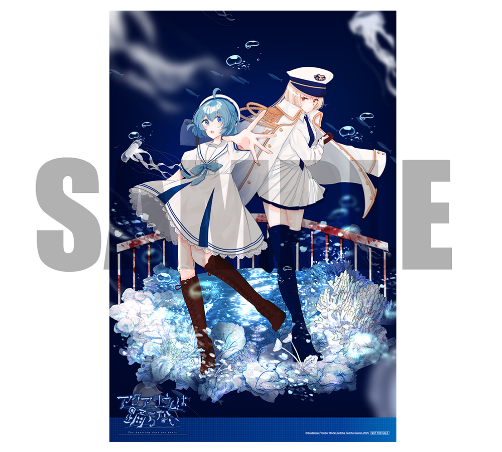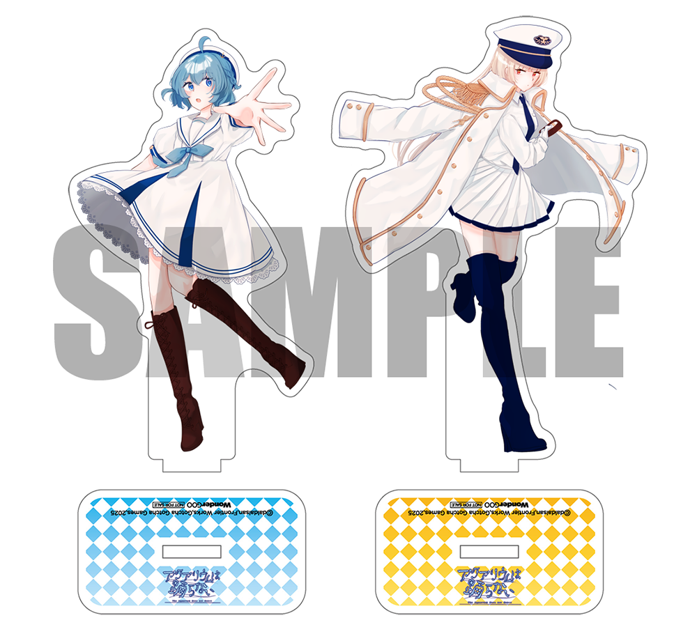 ビアンカ水族館の「プレミアム入場券」「一般入場券」のほか、橙々氏によるキャラクター集合イラスト、ゲーム内ドット絵を使用した透明感ある全4種のクリアしおりセット。