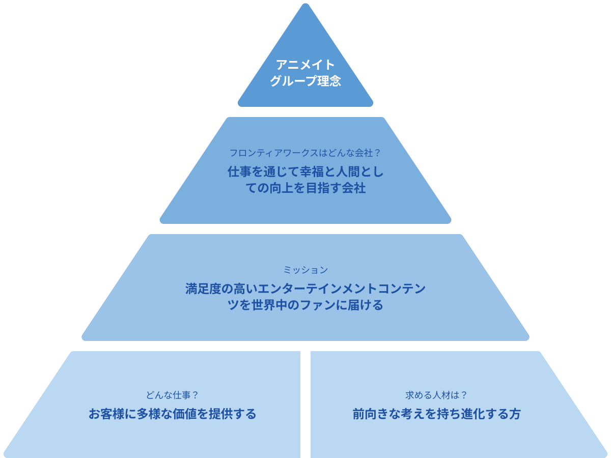 お客様へ満足度の高い、エンターテインメントコンテンツを常に提供する会社を目指します。