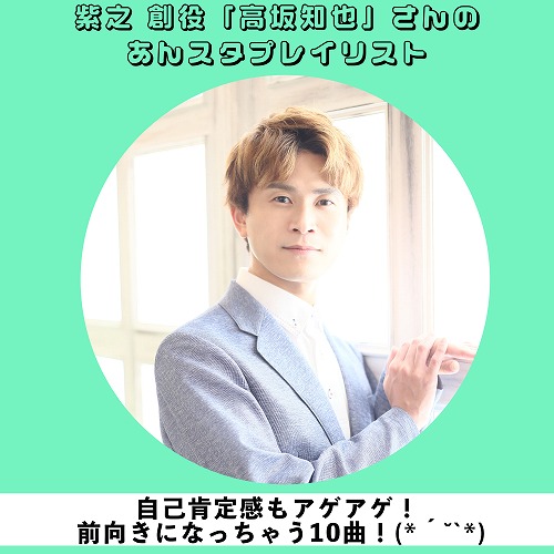 紫之 創役「高坂知也」さんのあんスタプレイリスト【自己肯定感もアゲアゲ! 前向きになっちゃう10曲!(*´˘`*)】
