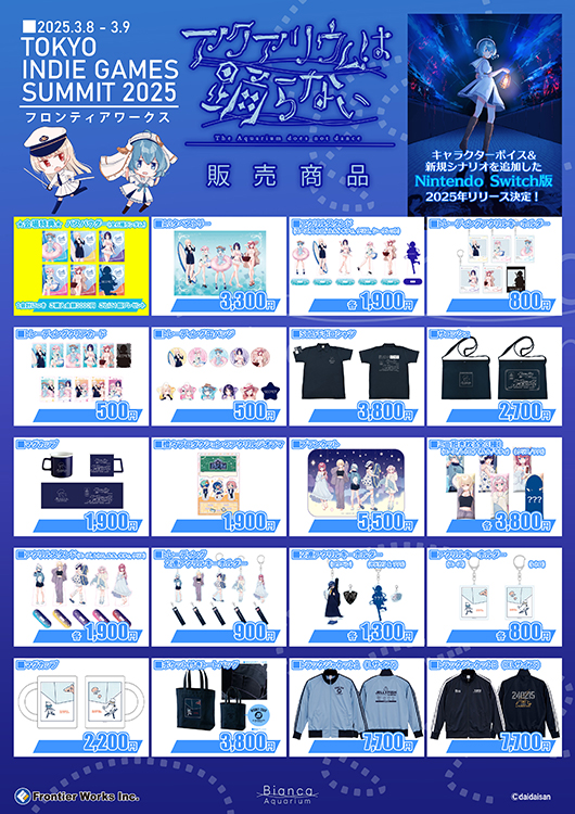 話題のインディーゲーム「アクアリウムは踊らない」等のグッズ販売を行います。