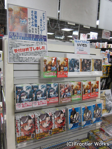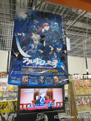 私達が会場の7Fコミック売り場に到着すると、そこには素敵な「アルカナ・ファミリア」コーナーが! 文庫だけでなく、さらち先生イラストのA0ポスターやアニメのPVも流れてました♪
