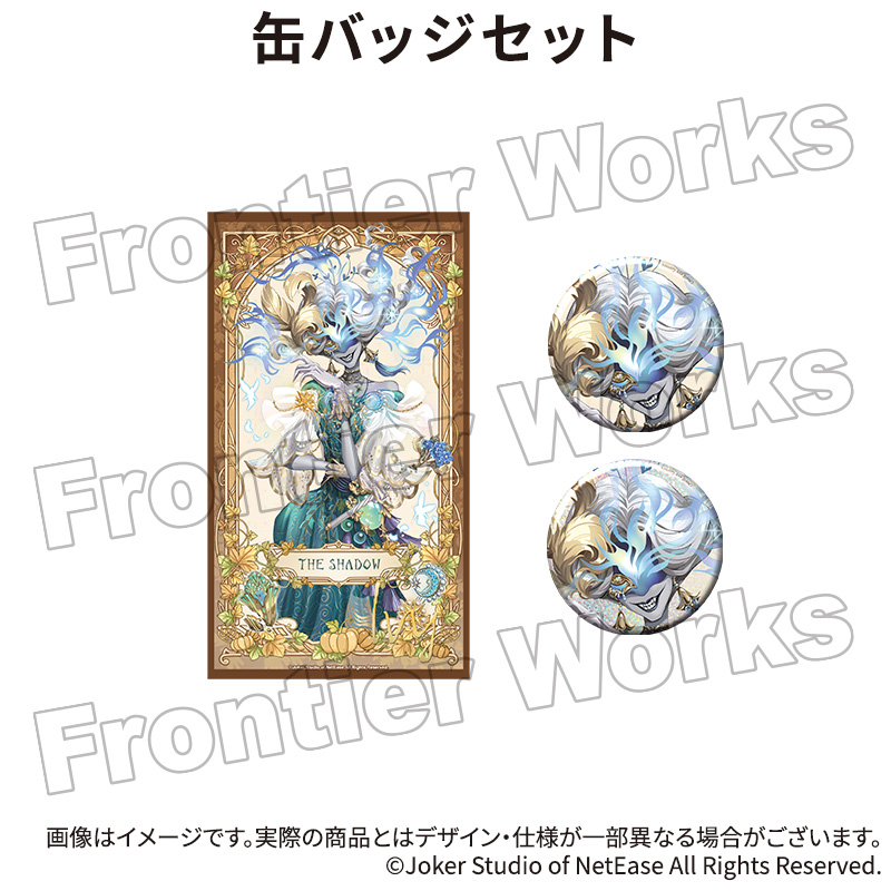 仕様:缶バッジ2個(通常仕様1個・ホログラム仕様1個)、イラストカード1枚入り サイズ:缶バッジ①・缶バッジ②:直径約56mm、イラストカード:約W83×H148mm 素材:紙、ブリキ