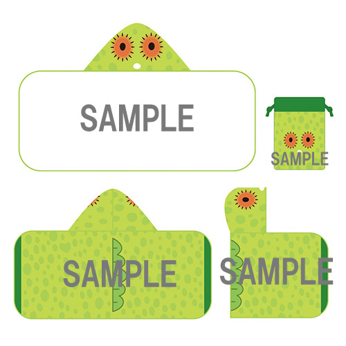 チュパカブラのボディをイメージした、フード付きのブランケットになります。収納用の巾着袋が付属します。