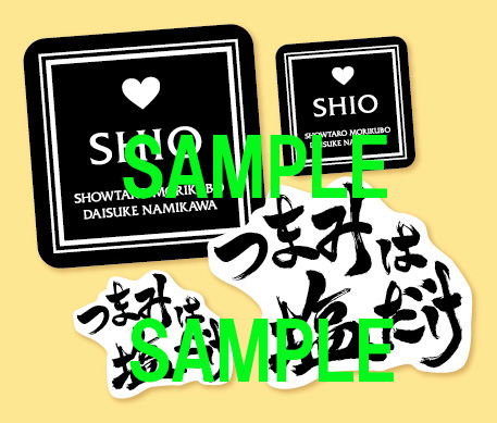 ※全4枚セット サイズ: 【SHIOマーク】大 約50×50㎜、小 約30×30㎜ 【筆文字ロゴ】大 約50×60㎜、小 約30×36㎜ 材質:紙、PP 原産国:日本