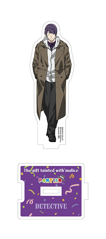 マーダーミステリー「悪意に染まったプレゼント」のキャラクター、「探偵」のアクリルスタンド。 連結する台座付。 素材:アクリル サイズ:本体約W70×H100mm内・台座付 原産国:中国