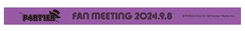 マーダーミステリー「悪意に染まったプレゼント」の作中で開催されるイベント、大人気グループ「P4RT1ER(パーティー)」のファンミーティングのグッズを模したラバーバンド。 登場キャラクター「探偵」のイメージカラー紫。 素材:シリコンゴム サイズ:202mm×15mm 原産国:中国