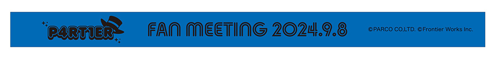 マーダーミステリー「悪意に染まったプレゼント」の作中で開催されるイベント、大人気グループ「P4RT1ER(パーティー)」のファンミーティングのグッズを模したラバーバンド。 登場キャラクター「鑑定士」のイメージカラー青。 素材:シリコンゴム サイズ:202mm×15mm 原産国:中国