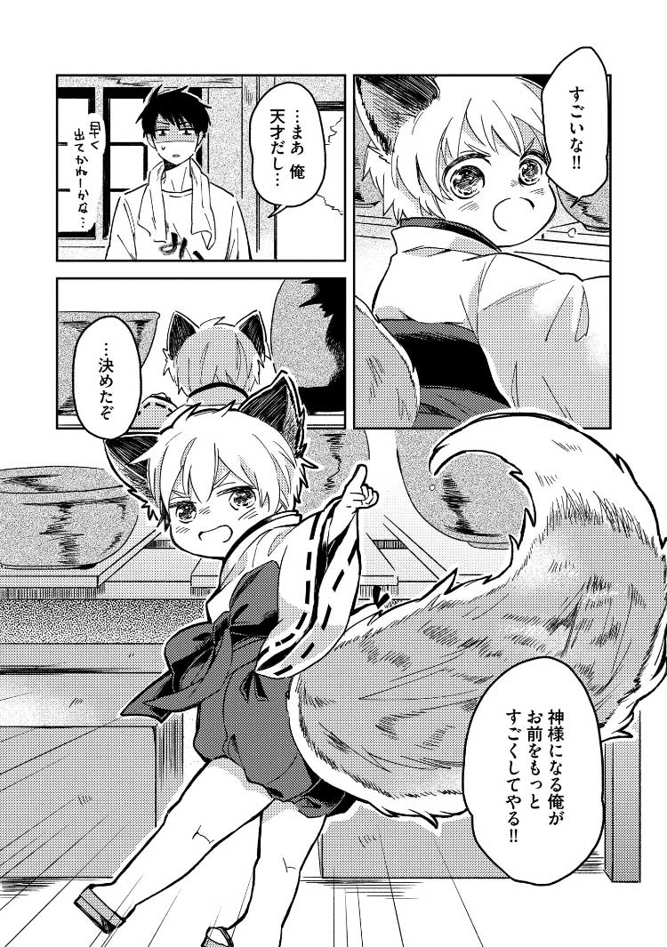 (天才)若手陶芸家・浩太郎のもとに、突然やって来た小さなこども。 ふさふさの耳としっぽがついたそいつは、 "神様見習い"のキツネだった――!?