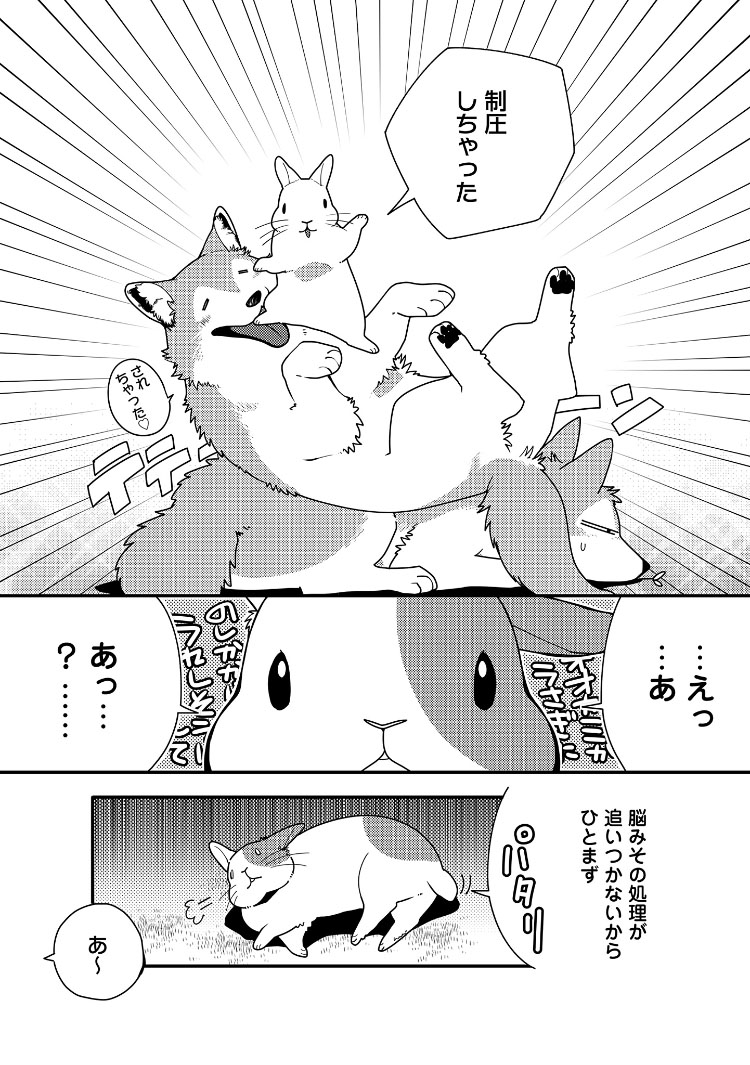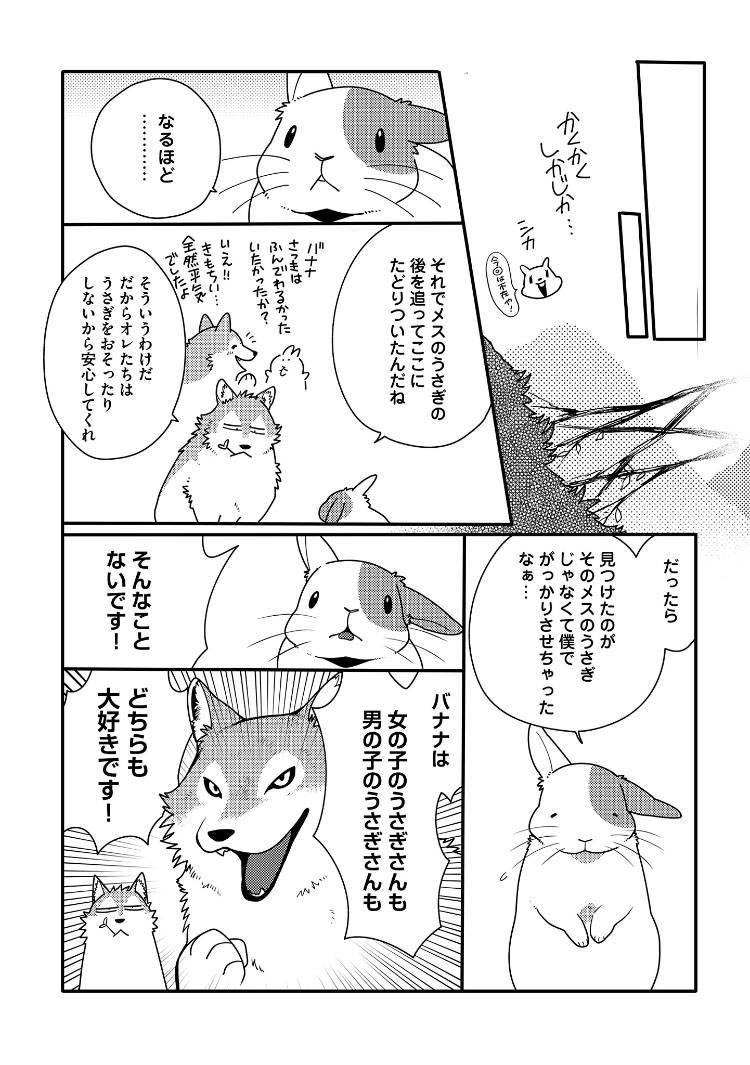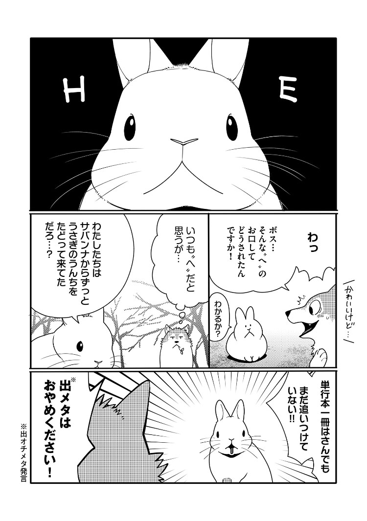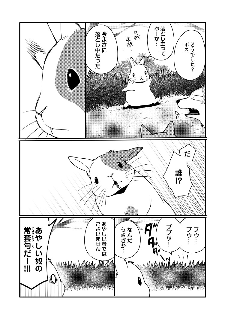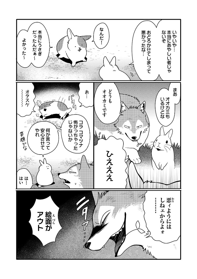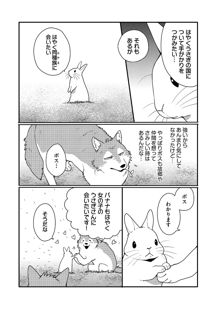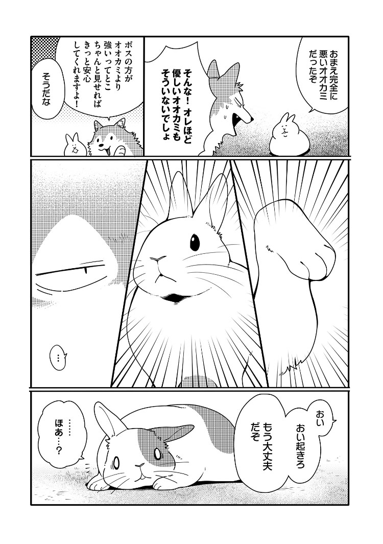 強くてかわいいうさぎボスとボス大好きな手下オオカミたちは、旅の途中でうさぎの家族と出会う。