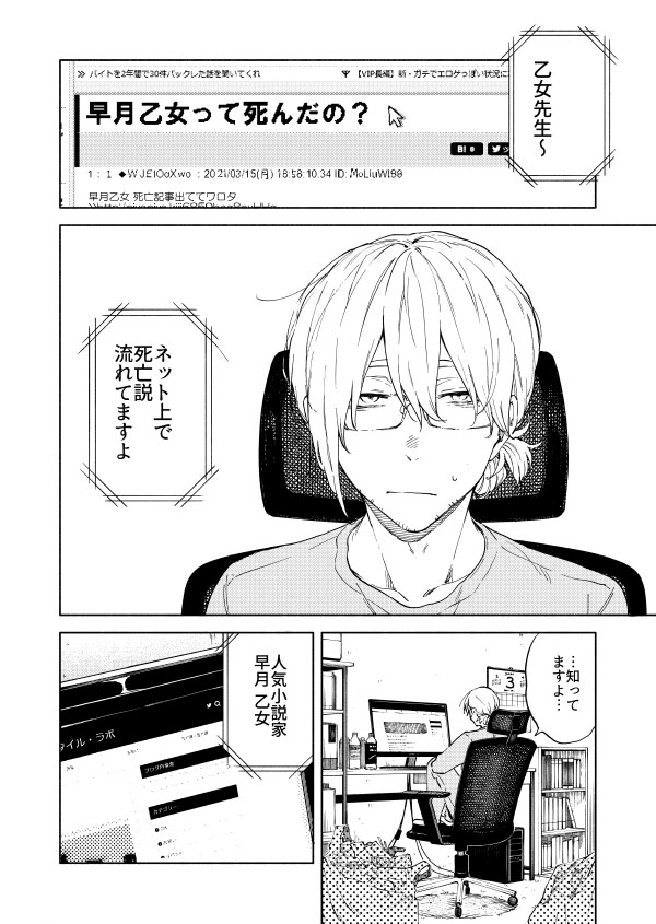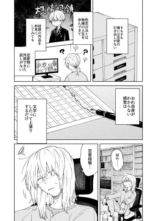 ”誰かのために小説を書いた”唯一の相手である彼に、一方的に気まずい思いを抱く早乙女。