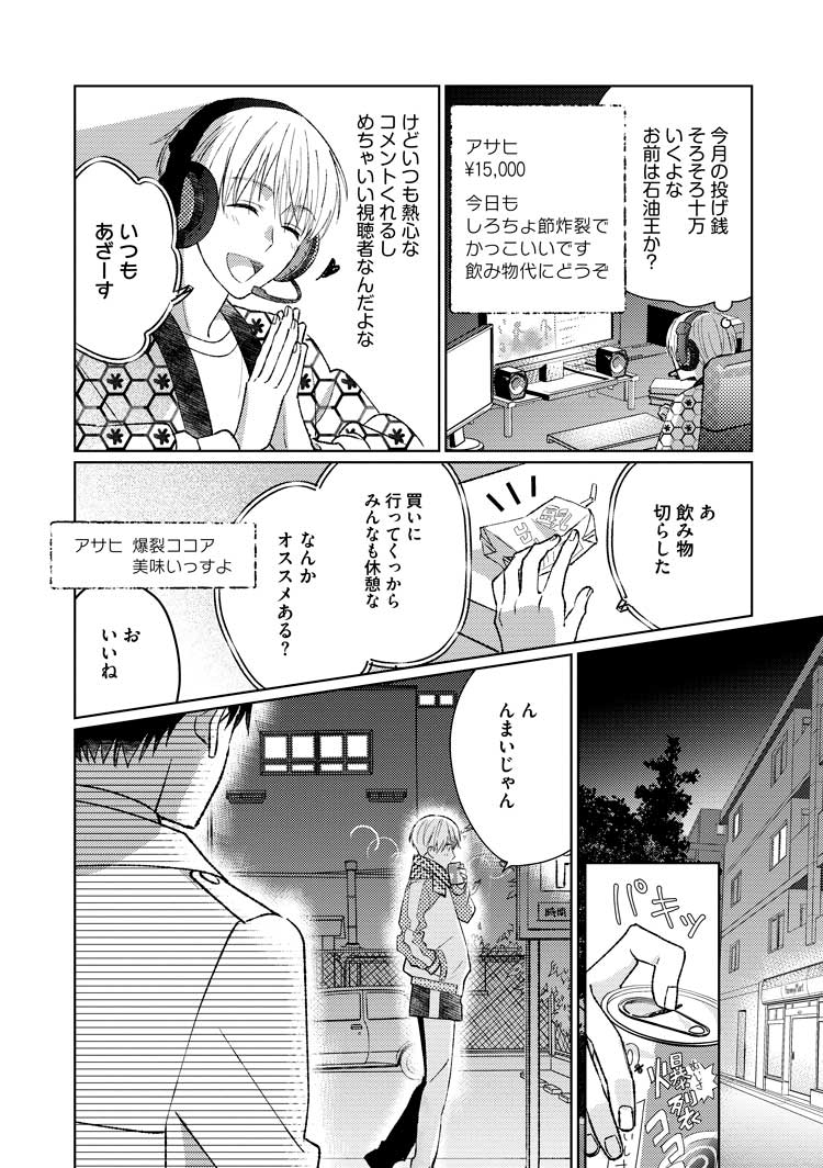 周りに秘密でゲーム配信者「しろちょ」として活動している白藤は、