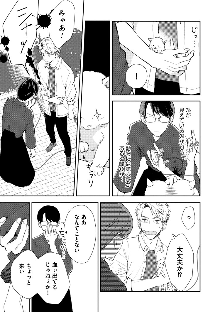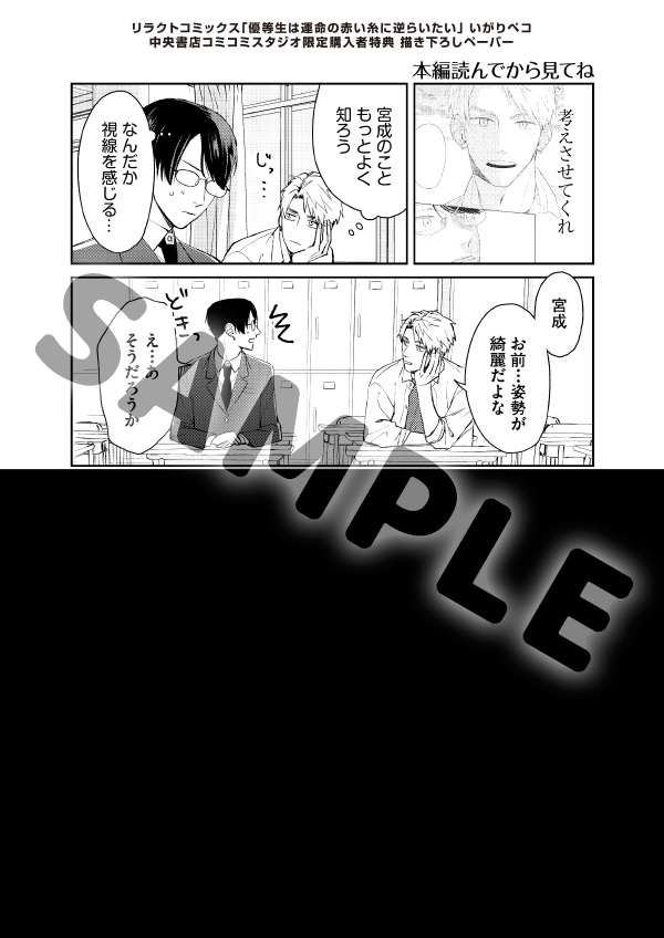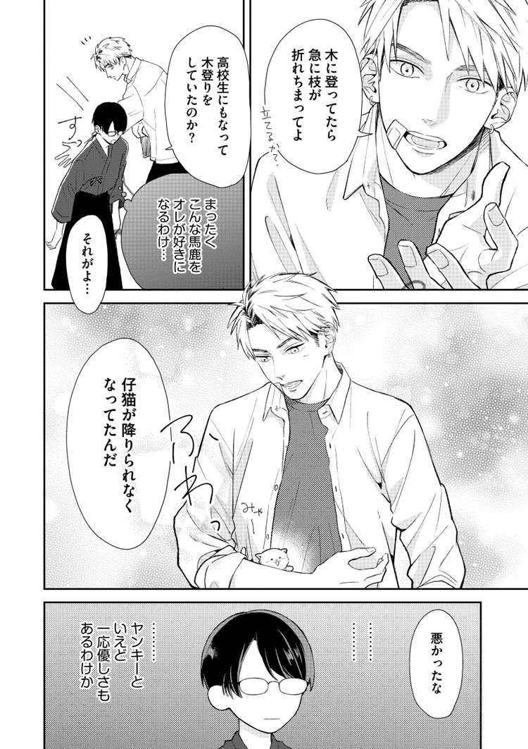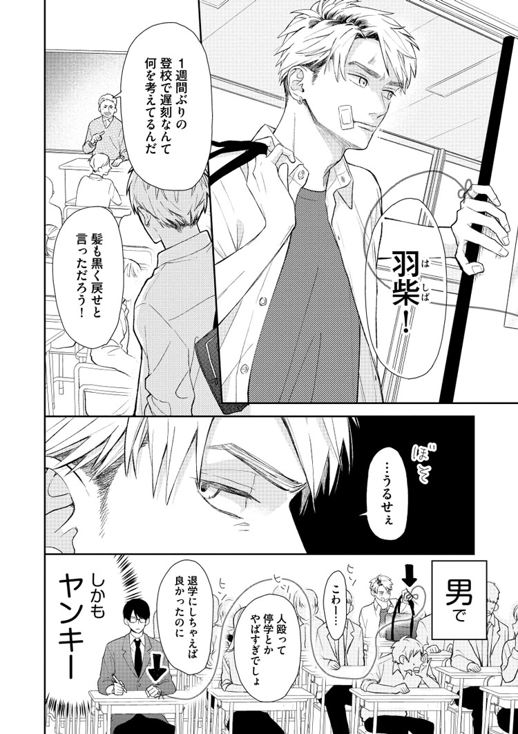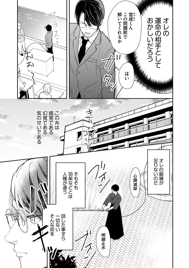 堅物な優等生の宮成は、ある日突然同じクラスのヤンキー・羽柴と自分を結ぶ赤い糸が見えるようになる。