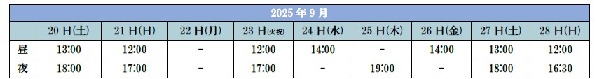 ◆日程:2025年9月20日(土)〜9月28日(日)