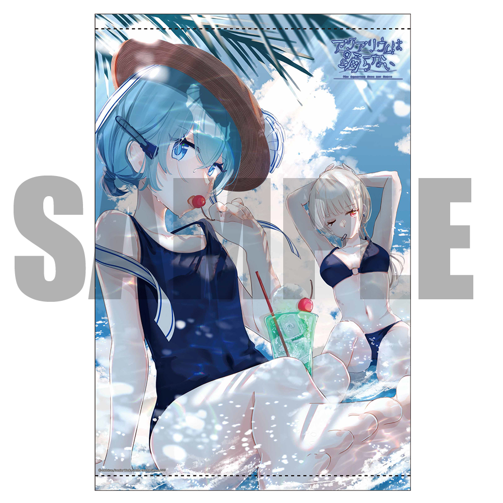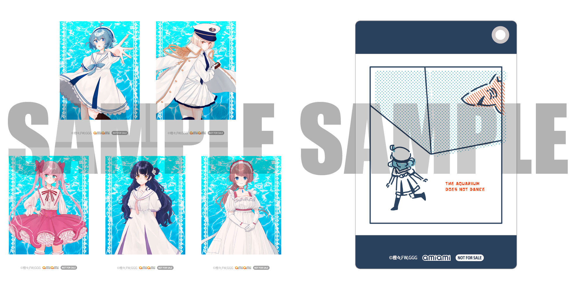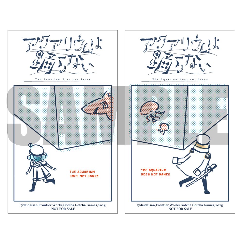 ビアンカ水族館の「プレミアム入場券」「一般入場券」のほか、橙々氏によるキャラクター集合イラスト、ゲーム内ドット絵を使用した透明感ある全4種のクリアしおりセット。