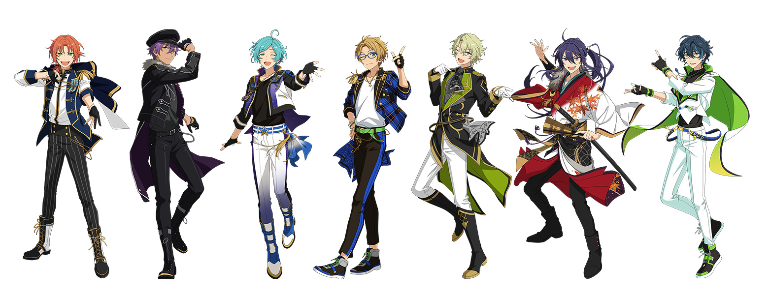 遊木 真 (CV:森久保 祥太郎)、深海 奏汰 (CV:西山 宏太朗)、巴 日和 (CV:花江 夏樹)、乙狩 アドニス (CV:羽多野 渉)、神崎 颯馬 (CV:神永 圭佑)、月永 レオ (CV:浅沼 晋太郎)、青葉 つむぎ (CV:石川 界人)