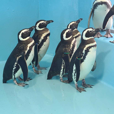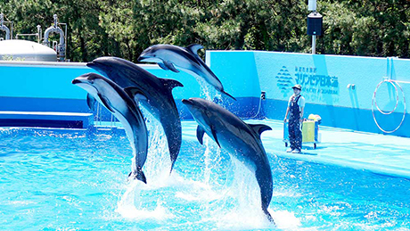 フンボルトペンギンやゴマフアザラシの解説、ダイナミックなジャンプが人気のイルカショーは毎日開催しています。