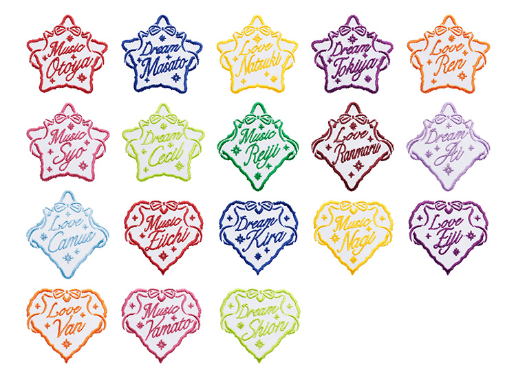 一十木音也、聖川真斗、四ノ宮那月、一ノ瀬トキヤ、神宮寺レン、来栖 翔、愛島セシル