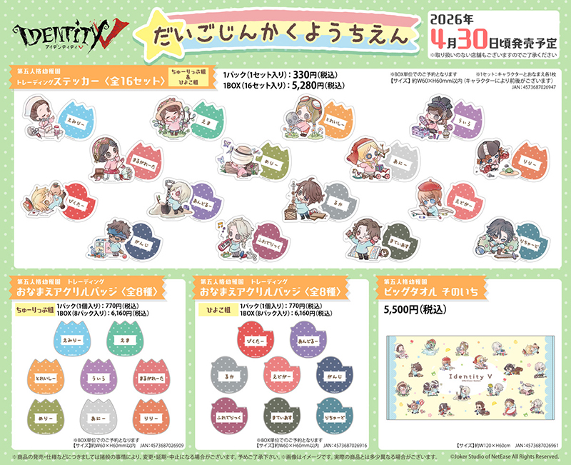 【第2弾】では、RE:シリーズや「第五人格幼稚園」シリーズのグッズを先行販売予定ですので、是非この機会をお見逃しなく!