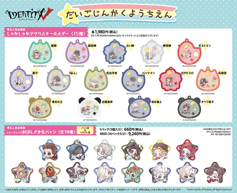 【第3弾】では、RE:シリーズや第五人格幼稚園シリーズのグッズを先行販売予定ですので、是非この機会をお見逃しなく!