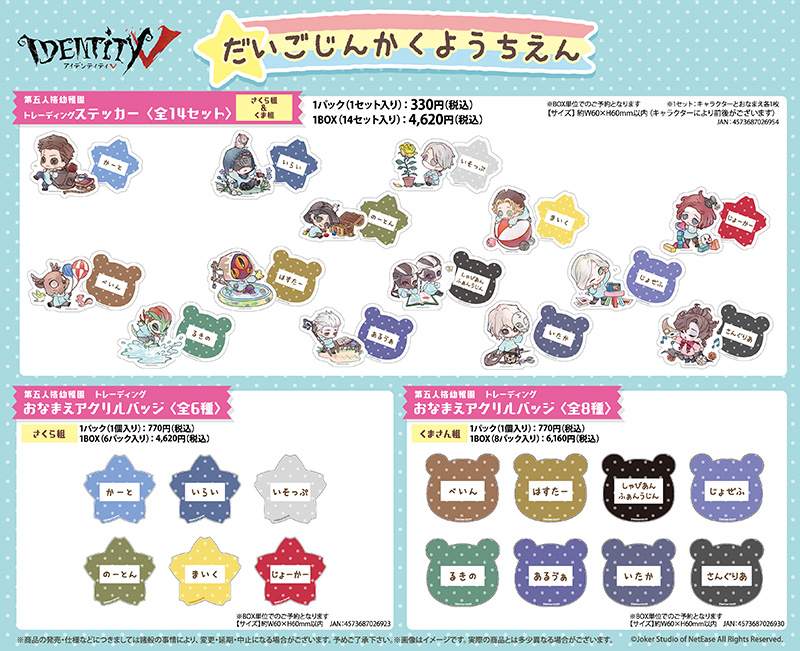 ・第五人格幼稚園 トレーディングステッカー さくら組&くま組