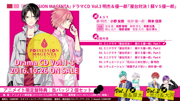 『POSSESSION MAGENTA』ドラマCD Vol.1?3【アニメイト限定盤】全巻同時購入特典