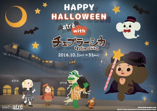 「HAPPY HALLOWEEN atre with チェブラーシカ」と題し、10月の1か月間、ハロウィンの衣装を着たチェブラーシカ達がアトレ吉祥寺の館内を彩ります!また、チェブラーシカとの写真撮影会や毎年恒例のオリジナルメニューなど企画が目白押し。