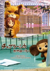 スローシネマで上映中の新作短編「チェブラーシカ 動物園へ行く(約18分)」と同じく中村誠監督が出掛けた「ちえりとチェリー(約54分)」を2本立てで上映いたします。3回上映しますのでご都合の良い時間帯にご来場下さい。また、会場にはチェブラーシカも遊びに行きます!