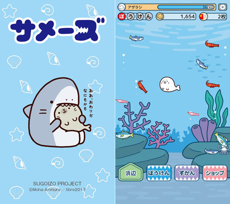 アリムラモハ氏がTwitterで始め、LINEクリエイターズスタンプなどで火がつき書籍化まで行われた話題沸騰中のキャラクター。「かわいいけれど、シュール」で弱肉強食な世界にハマる人が続出。グッズ展開も多数行われており、2017年7月22日には4コマ漫画「サメーズ -サメとアザラシ-」も発売予定。