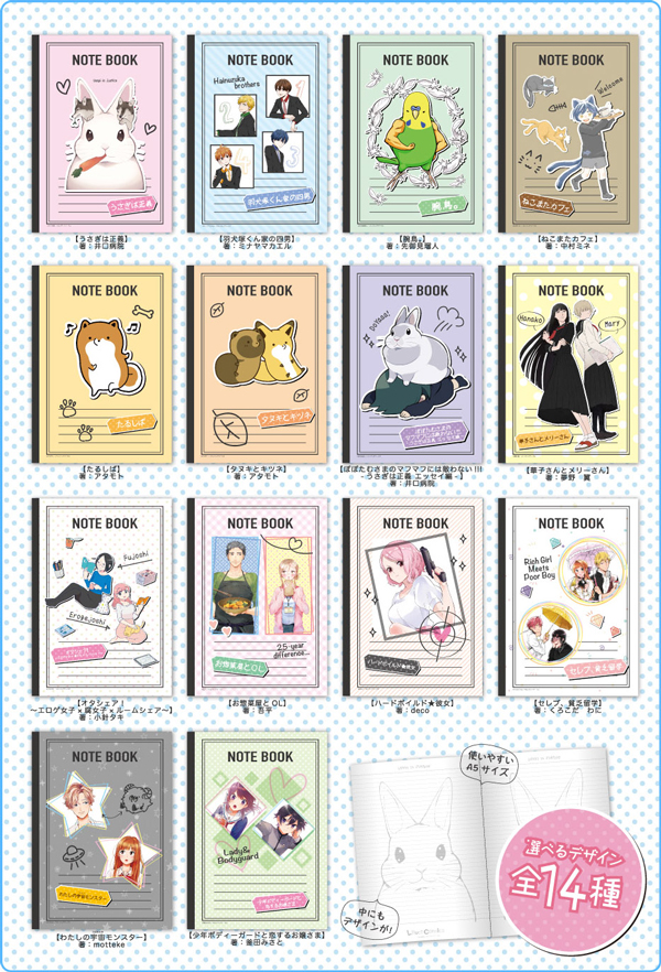 対象店舗のクレーンゲームに500円投入でリラクトコミックスオリジナルノートを1冊プレゼント! 特典は選べる全14種!