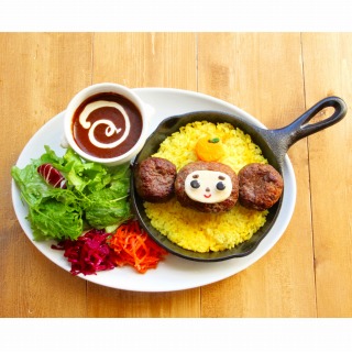 ビーフ100%のハンバーグと玉ねぎの美味しさを炊き込んだ黄色いピラフにコトコト煮込んだ