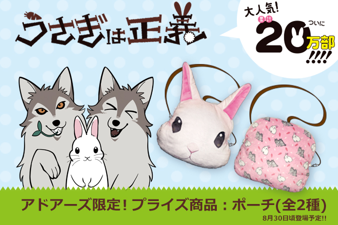 シリーズ累計20万部突破!リラクトコミックスの大人気作品「うさぎは正義」のポーチがアドアーズ限定で8月30日から登場!飾っても使ってもかわいいポーチ全2種です