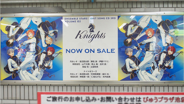 あんさんぶるスターズ!ユニットソングCD「fine」&「Valkyrie」のジャケットビジュアル広告、「Knights」オリコン週間CDランキング2位を記念した広告をJR池袋駅の北口改札外通路に掲載中!