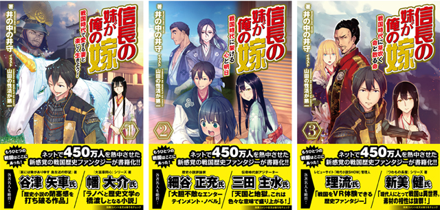 ▲今回の推薦コメントが記載された特製帯仕様の『信長の妹が俺の嫁 1~3』