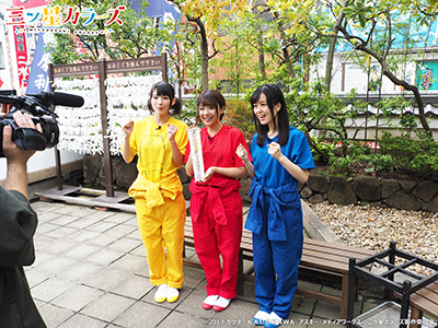 「天才!カラーズTV」は高田憂希(結衣役)、高野麻里佳(さっちゃん役)、日岡なつみ(琴葉役)の3人が、カラーズの様に小学生に戻ったつもりで、小学生の頃にした事や出来なかった事に挑戦していきながら「三ツ星カラーズ」の魅力をお伝えしていくきます!