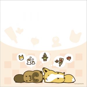 タヌキはカフェラテ味、キツネはかぼちゃ味、葉っぱは抹茶味で表現しています。