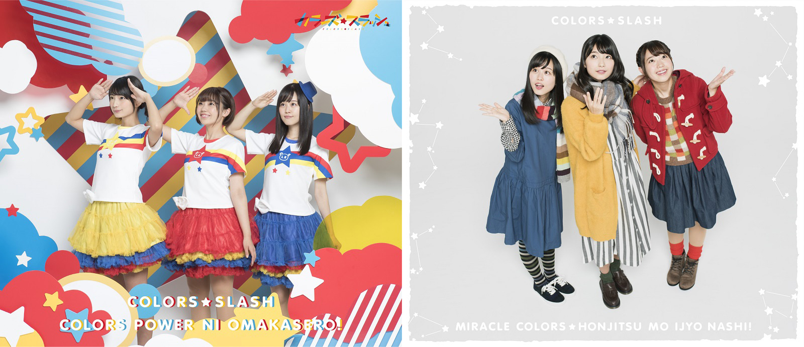 オープニング主題歌『カラーズぱわーにおまかせろ!』には原作カツヲによるアニメ化応援イラストをモチーフにした衣装で撮りおろした3人、エンディング主題歌には可愛い冬服に身を包んだ3人を撮りおろしたデザインが登場です。