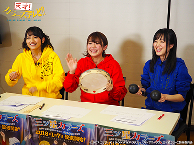 「天才!カラーズTV」は高田憂希(結衣役)、高野麻里佳(さっちゃん役)、日岡なつみ(琴葉役)の