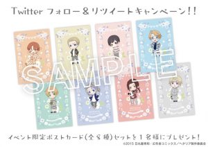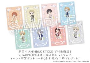 期間中『ヘタリア The World Twinkle リラックスタイム in AMNIBUS STORE』にて、対象商品を2,160円(税込)お買い上げごとにランダムで1枚、イベント限定ポストカード(全8種)をプレゼントいたします。