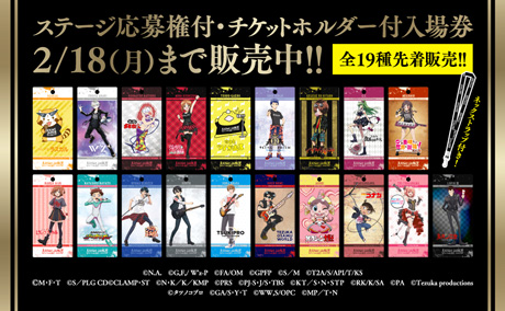 ▼チケットホルダー(全19種)の入手方法は「ステージ応募権付き・チケットホルダー付き入場券」をお買い求めください。ご希望のイラストのチケットホルダー1種付き。