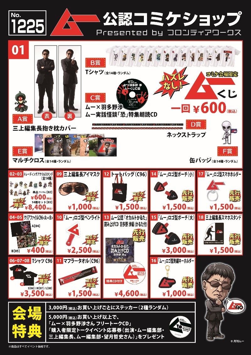 コミケ会場限定の「ムーくじ」や、コミケ先行の「ムー公認 「オカルトかるた」読み上げCD 羽多野渉編」等、