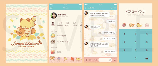 今回は、「タヌキとキツネ」の新シリーズ、「ちびっこタヌキとちびっこキツネ」バージョンの“LINE着せかえ”になります。