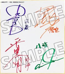 さらに、グッズ購入3,000円(税込)ごとに、玄奘三蔵役:関 俊彦・孫悟空役:保志総一朗・沙悟浄役:平田広明・猪八戒役:石田彰の三蔵一行キャストの豪華寄せ書き直筆サイン色紙があたる抽選会を行います!