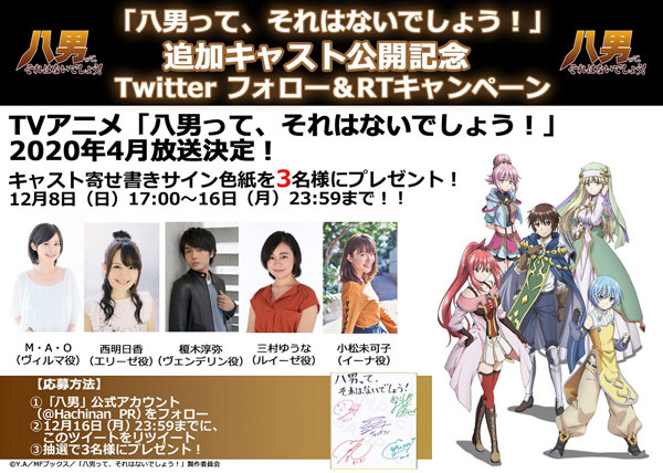 名称:「八男って、 それはないでしょう!」 追加キャスト公開記念Twitter フォローキャンペーン