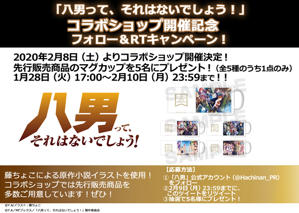 さらに「八男って、 それはないでしょう!」公式Twitterでも、 コラボショップ開催記念フォロー&RTキャンペーンが実施決定!