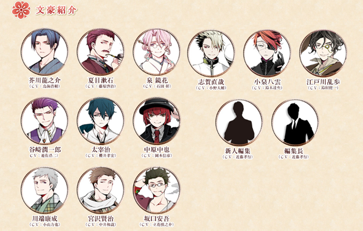 夏目漱石…藤原啓治/芥川龍之介…鳥海浩輔/太宰 治…櫻井孝宏