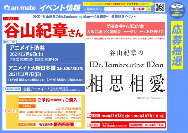 DJCD「谷山紀章のMr.Tambourine Man~相思相愛~」の発売を記念して、【発売記念イベント】の開催が決定しました!