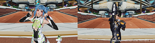 今回もロビーアクションは「NGS仕様コスチューム」を着用すると指が動く仕様です。